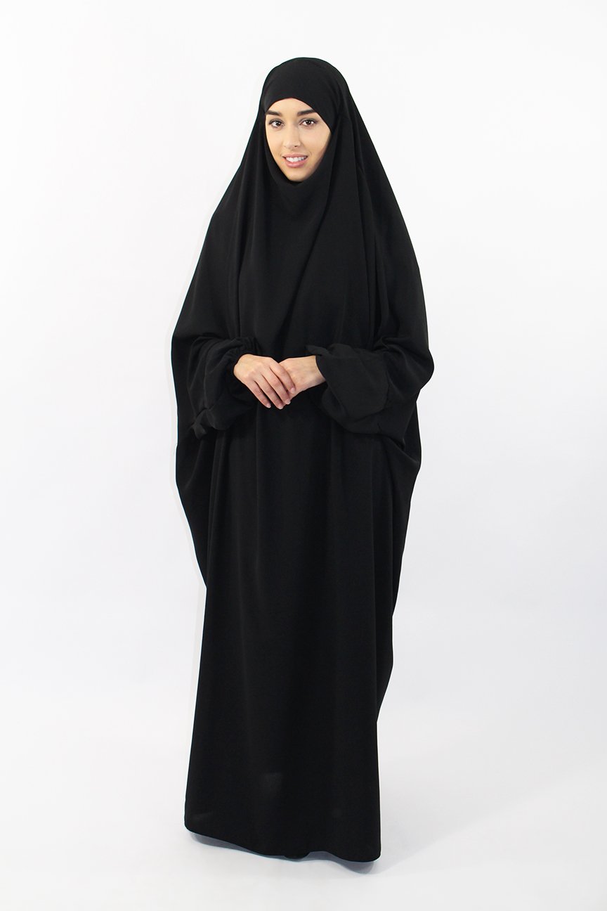• les longues manches permettent d'enfiler facilement une veste ou un manteau sans déformer le jilbab.